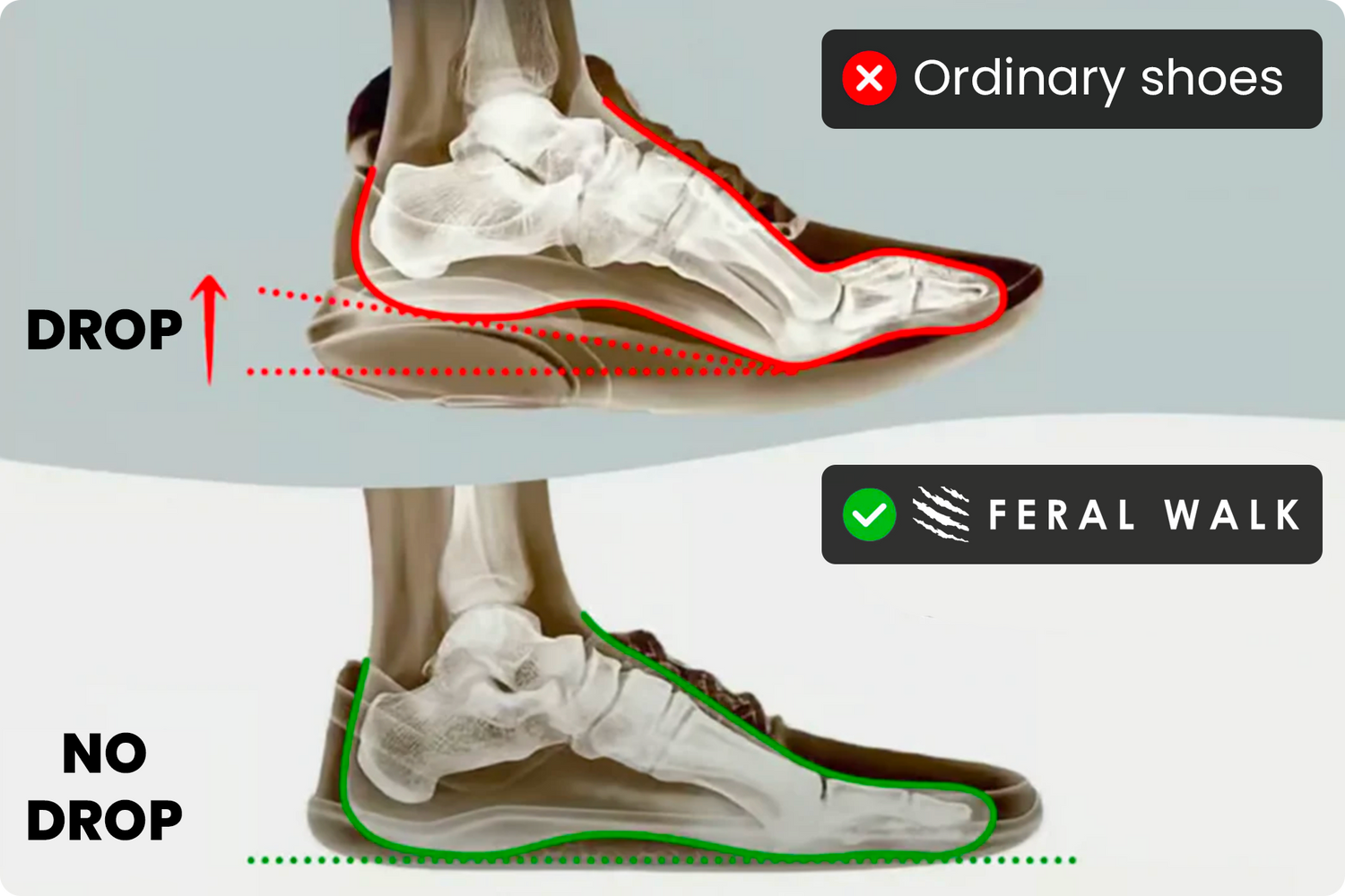 While Feral Walk promotes natural foot movement, it's not the same as going barefoot. Our shoes provide essential protection against sharp objects, hot temperatures, and rough surfaces, while still allowing your feet to function naturally.